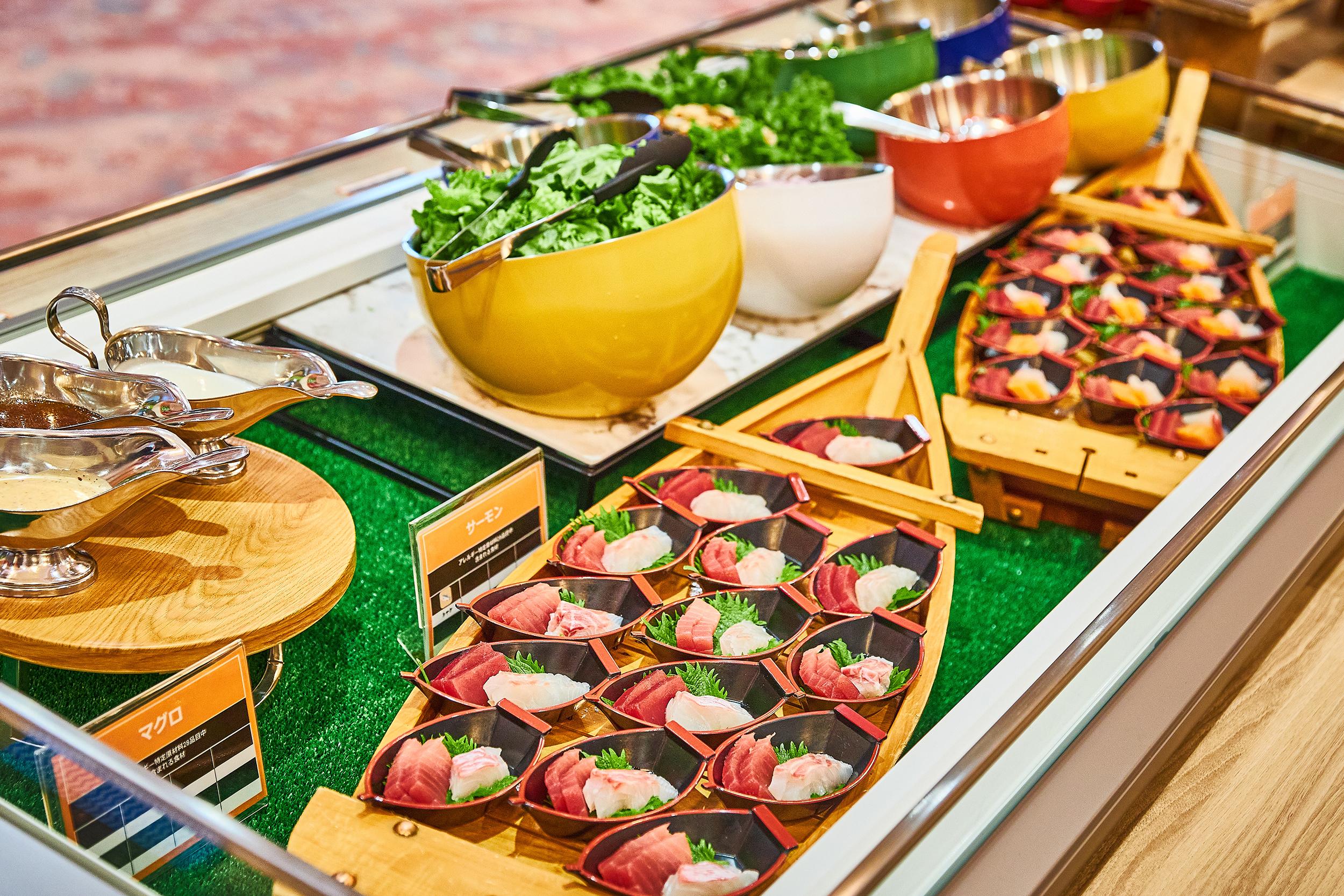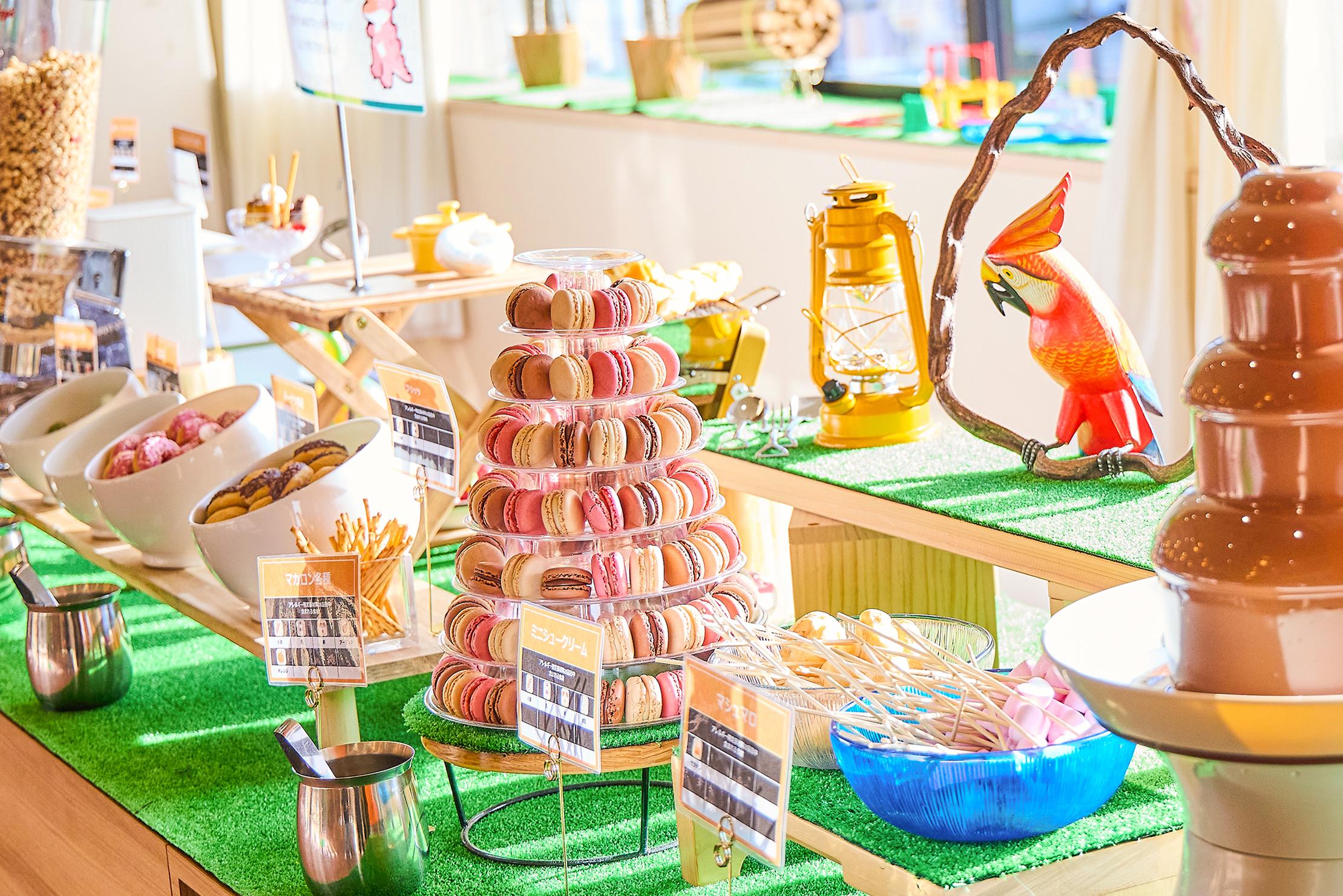 ■スイーツ&フルーツ ドーム・オ・フランボワーズ ドーム・オ・ショコラ ベイクドスフレチーズ ロールケーキ(いちご・ショコラ) チュロス(抹茶・チョコ) フルーツグラノーラ アンダ特製プリン 白桃のタルト コーヒーゼリー りんごゼリー いちごのミルクレープ チョコファウンテン & いちごチョコファウンテン ミニシュークリーム マカロンタワー ソフトクリーム 季節のフルーツ (パイナップル・オレンジ・ぶどう・メロン等) |